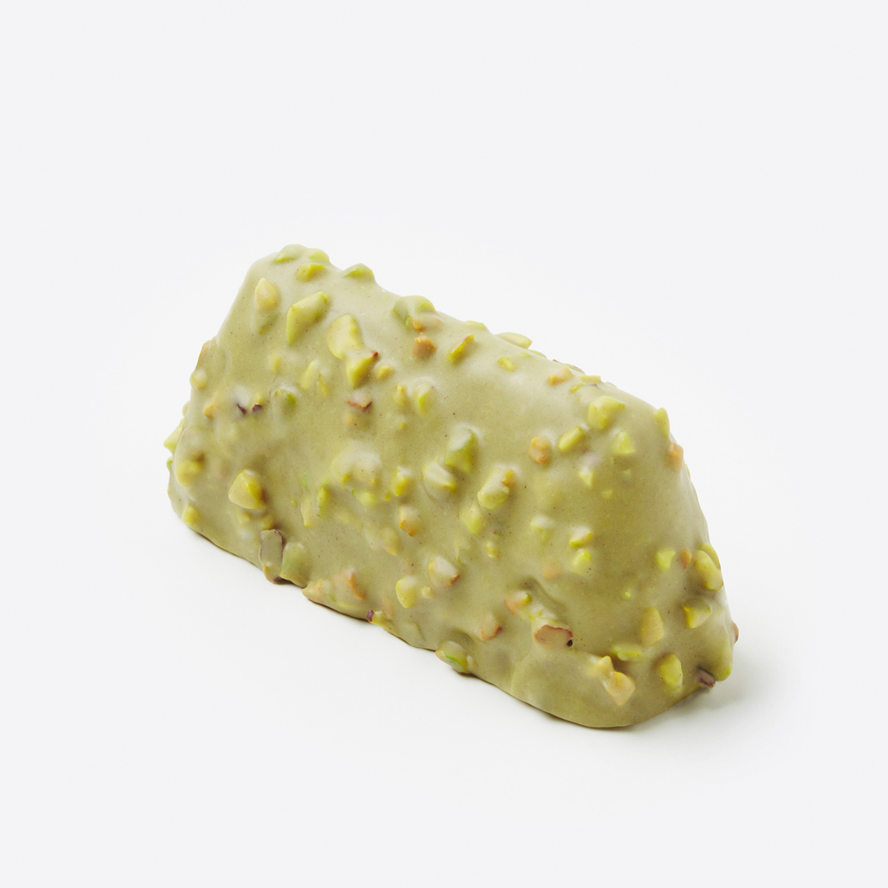 Mousse al pistacchio di Bronte 100% con cuore di pistacchio ricoperto da cioccolato al pistacchio e granella di pistacchi tostati